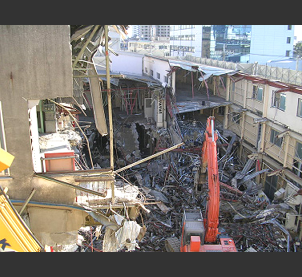 鉄骨造4階建の構造物にも拘らず、新幹線の軌道工事という事で重機の旋回範囲に規制がかかり、大半が人力による時間制限有という中での工事でした。
