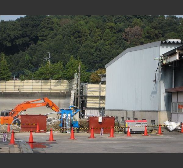 工場の中の排水処理施設の撤去工事で、大型プールのようなRC造の水槽の中にモーターや大きな設備が取り付けられており、設備撤去は